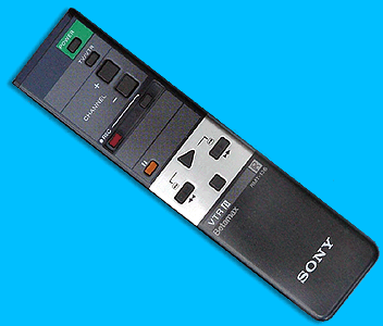 The RMT-136 was included with several budget Beta models. It operates most of the basic functions found on Beta VCRs like power on, play, two button record, stop, pause, still, scan, TV/VTR and channel scan up and down. A red LED verifies each operation. Requires two AA batteries. Operates on VTR channel 1. To enlarge the remote click on the button or click here. |